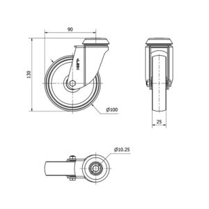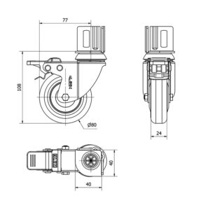 La serie de ruedas Alex BHA-PGA son ruedas con núcleo de poliamix y banda de goma gris natural, indicadas para soportar cargas hasta 90 Kg. Se utilizan en cantinas, comedores, restaurantes, supermercados, carros de alimentación, camas. PGA: No mancha el suelo. Rueda suave y silenciosa.