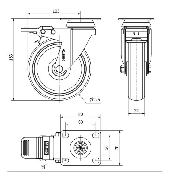 Rueda goma giratoria con freno Alex diametro 125 mm. modelo 2-3703 EAN 8422202237039