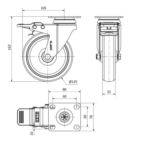 Rueda goma giratoria con freno Alex diametro 125 mm. modelo 2-4624