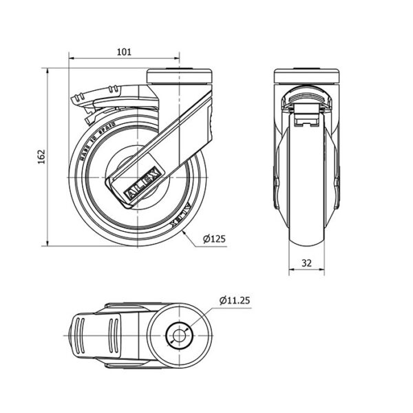 Rueda goma giratoria con freno Alex diametro 125 mm. modelo 2-4638