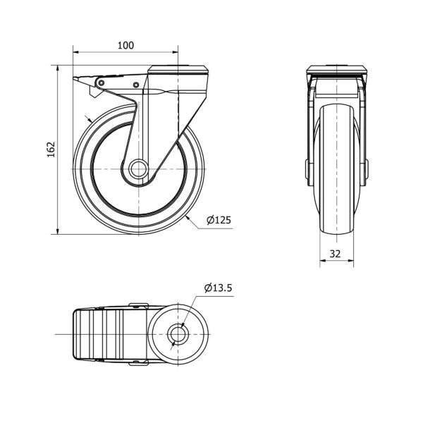 Rueda goma giratoria con freno Alex diametro 125 mm. modelo 4-1605 EAN 8422202416052
