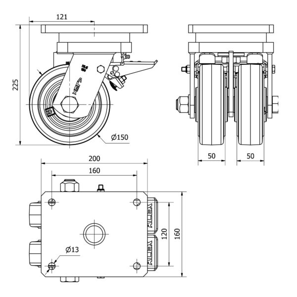 Rueda goma giratoria con freno Alex diametro 150 mm. modelo 2-3807