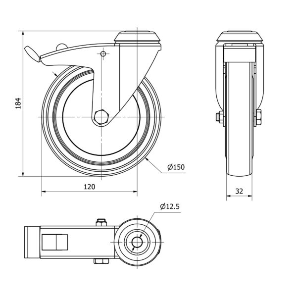 Rueda goma giratoria con freno Alex diametro 150 mm. modelo TW0250