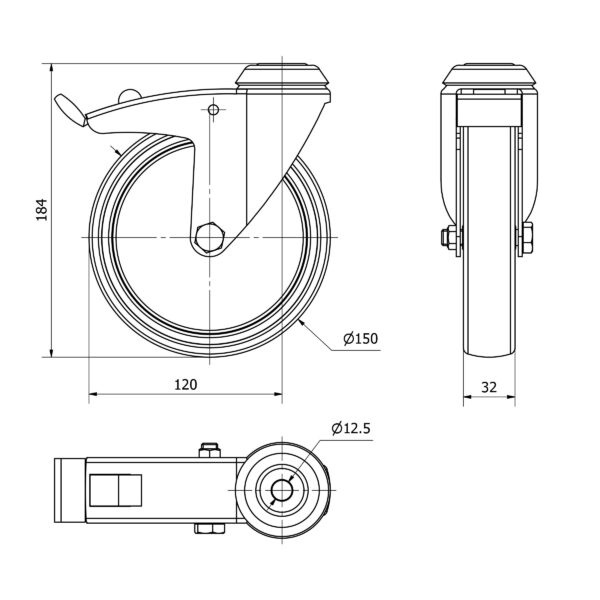 Rueda goma giratoria con freno Alex diametro 150 mm. modelo TW0252
