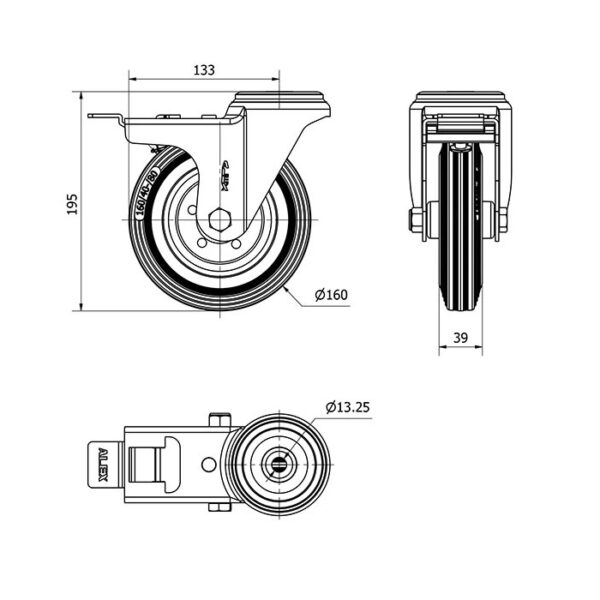 Rueda goma giratoria con freno Alex diametro 160 mm. modelo 2-1398