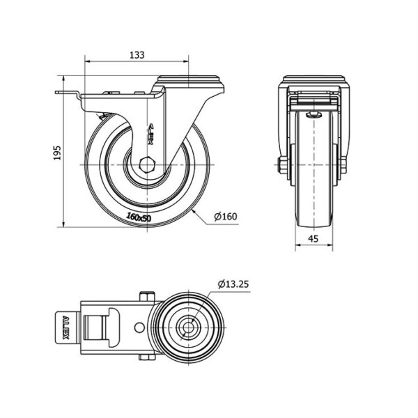 Rueda goma giratoria con freno Alex diametro 160 mm. modelo 2-3775
