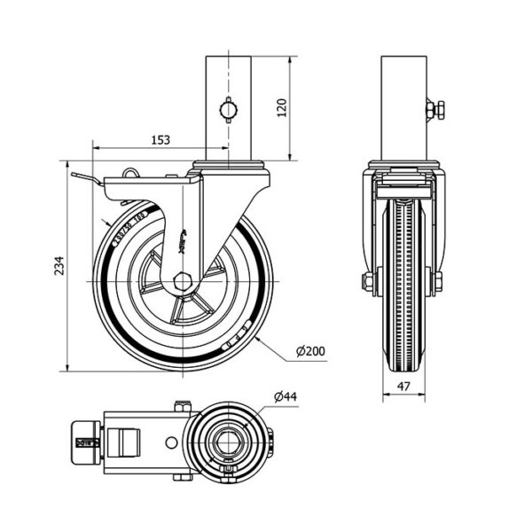 Rueda goma giratoria con freno Alex diametro 200 mm. 2-0906