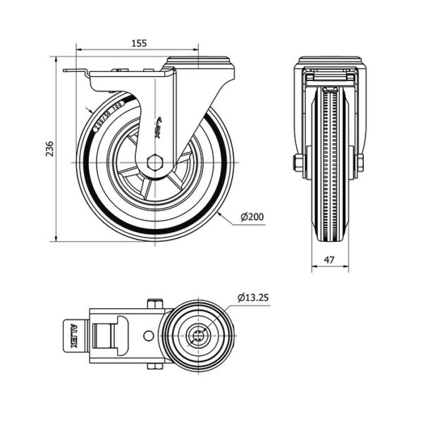 Rueda goma giratoria con freno Alex diametro 200 mm. 2-1356
