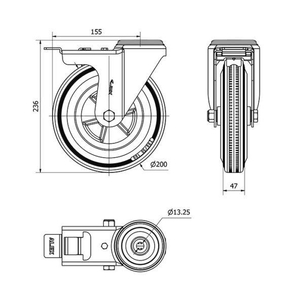 Rueda goma giratoria con freno Alex diametro 200 mm. 2-3426