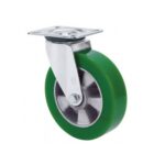 Rueda goma giratoria con freno Alex diametro 200 mm. modelo 2-3781 EAN 8422202237817 n nHOJA TECNICA n nLa serie de ruedas Alex ZV-PGR son ruedas de goma elástica gris, indicadas para soportar cargas hasta 400 Kg. Se utilizan en carros de herramientas, carros tubulares, logística interna, útiles de transporte, plataformas elevadoras, talleres, carros de transporte de alimentación, cocinas, cantinas, comedores, restaurantes, supermercados, jaulas de transporte, cajas de audio para sonido y gradas móviles. PGR: No manchan el suelo. Gran absorción de golpes y vibraciones. Ruedas suaves y silenciosas. Elásticas.