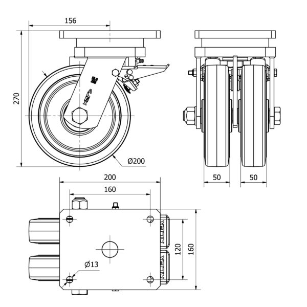 Rueda goma giratoria con freno Alex diametro 200 mm. 2-3808