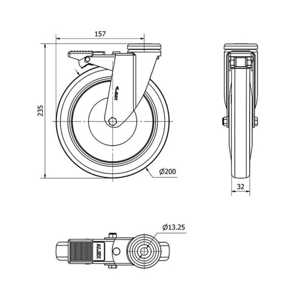 Rueda goma giratoria con freno Alex diametro 200 mm. modelo 2-1568