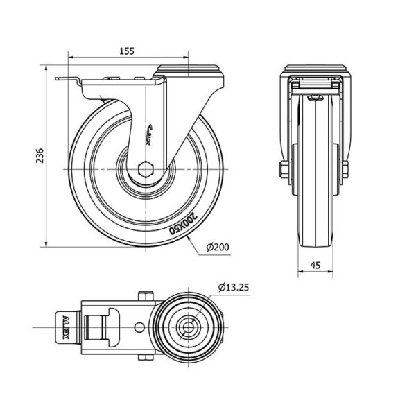 Rueda goma giratoria con freno Alex diametro 200 mm. modelo 2-4473