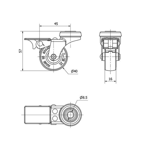 Rueda goma giratoria con freno Alex diametro 40 mm. modelo 1-0550