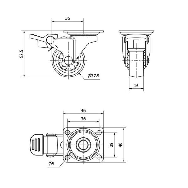 Rueda goma giratoria con freno Alex diametro 40 mm. modelo 1-0782