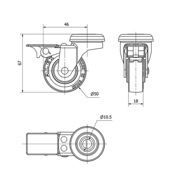 Rueda goma giratoria con freno Alex diametro 50 mm. modelo 1-0551