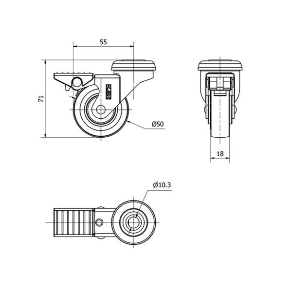 Rueda goma giratoria con freno Alex diametro 50 mm. modelo 1-0712 EAN 8422202107127
