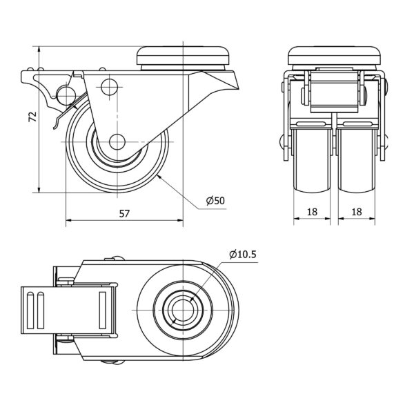 Rueda goma giratoria con freno Alex diametro 50 mm. modelo TW0107 EAN 8422202001074