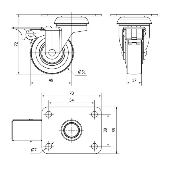 Rueda goma giratoria con freno Alex diametro 50 mm. modelo TW0159
