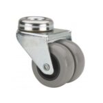 La serie de ruedas Alex Twin Lex serie 310 son ruedas de goma gris inyectada, indicadas para soportar cargas de hasta 80 Kg. Se utilizan en supermercados, expositores, muebles, cajas apilables, taburetes, vitrinas, percheros, carros de hostelería, útiles para hospitales, mobiliario clínico sanitario y goteros.. TWIN-LEX 310: No rallan el suelo, silenciosas y no dejan huella.