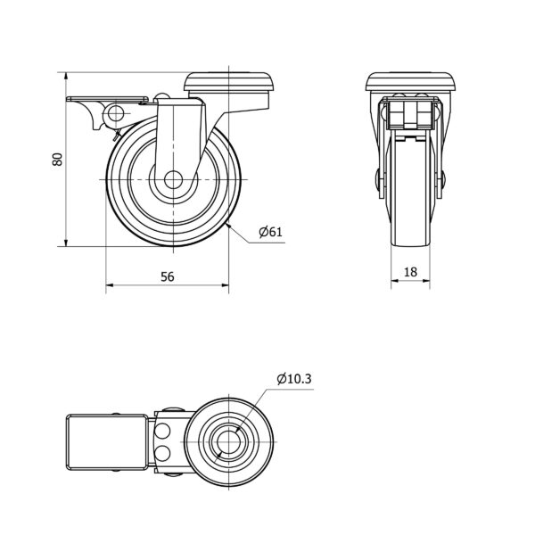 Rueda goma giratoria con freno Alex diametro 60 mm. modelo TW0163