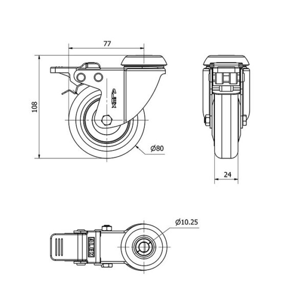 Rueda goma giratoria con freno Alex diametro 80 mm. modelo 1-0387