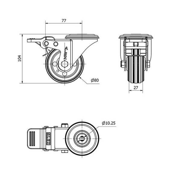 Rueda goma giratoria con freno Alex diametro 80 mm. modelo 2-2311