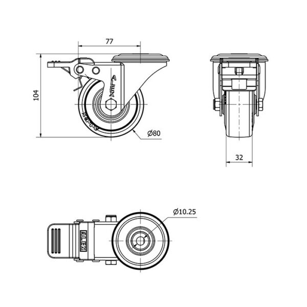 Rueda goma giratoria con freno Alex diametro 80 mm. modelo 2-2408