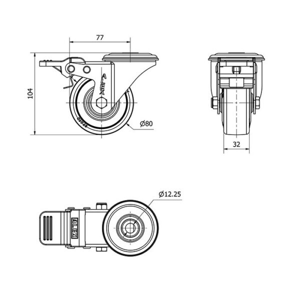 Rueda goma giratoria con freno Alex diametro 80 mm. modelo 2-4140