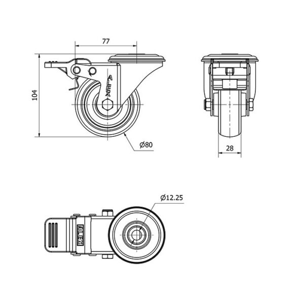 Rueda goma giratoria con freno Alex diametro 80 mm. modelo 2-4144