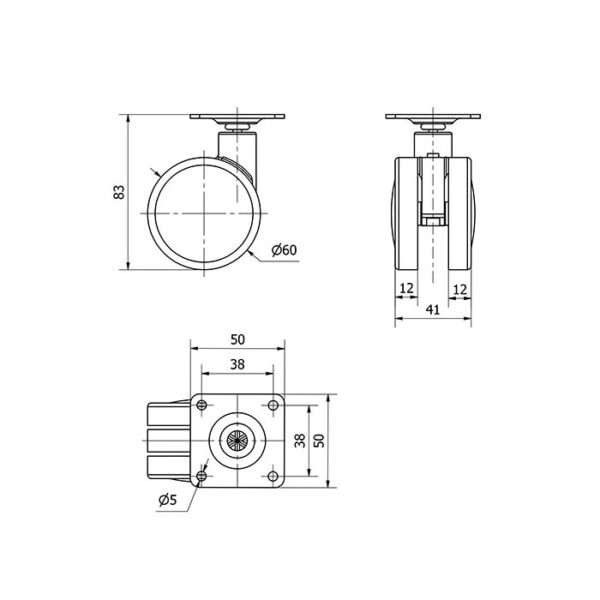 Rueda madera giratoria Alex diametro 60 mm. modelo 1-0627