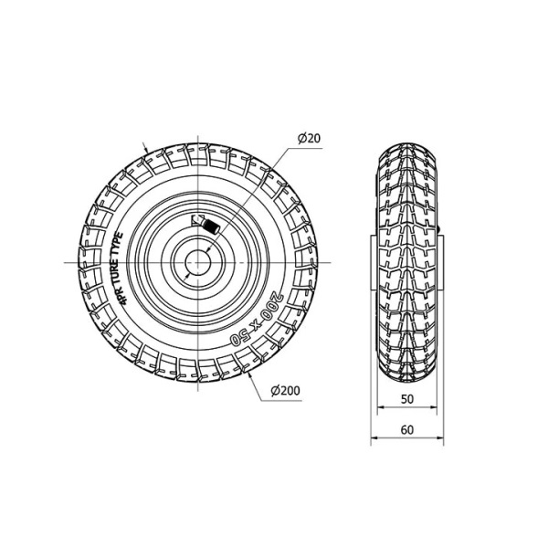 Rueda neumatica aro suelto Alex diametro 200 mm. 4-0036