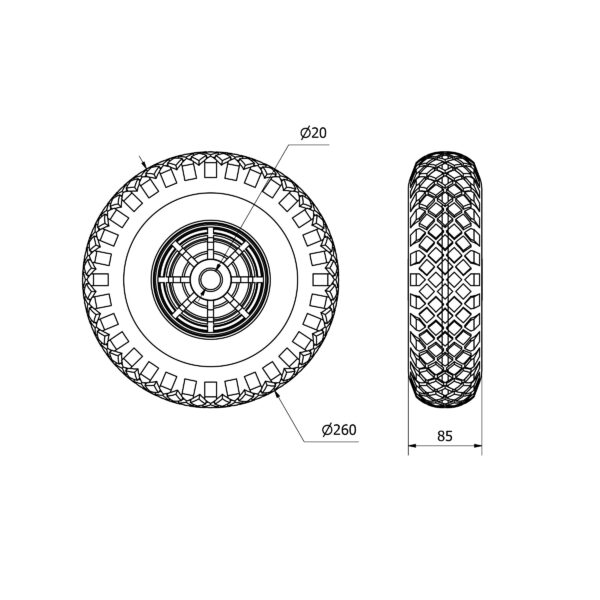 Rueda neumatica aro suelto Alex diametro 260 mm. TW0124