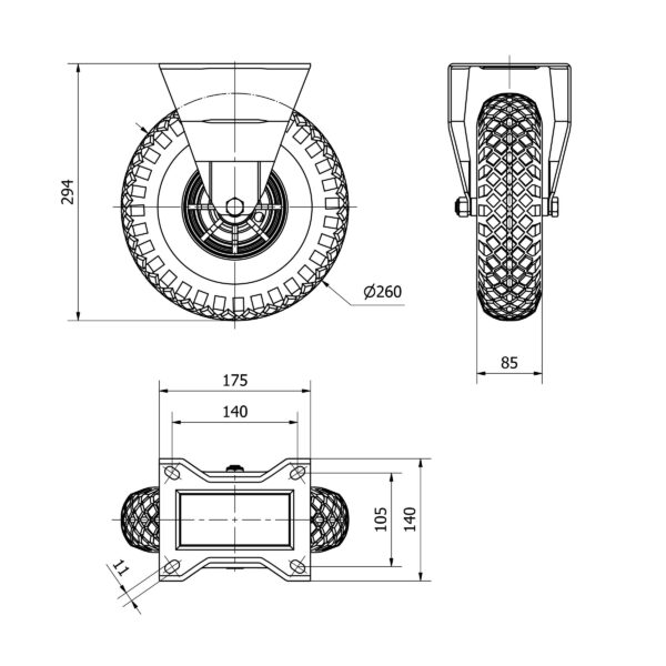 Rueda neumatica fija Alex diametro 260 mm. modelo 4-1647