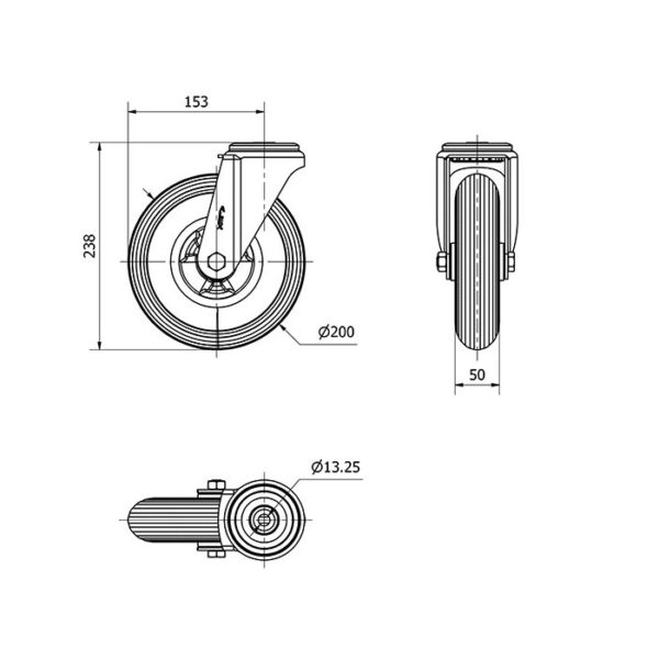 Rueda neumatica giratoria Alex diametro 200 mm. 2-1119