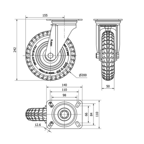 Rueda neumatica giratoria Alex diametro 200 mm. 4-0037