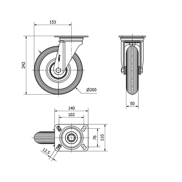 Rueda neumatica giratoria Alex diametro 200 mm. modelo 2-1111