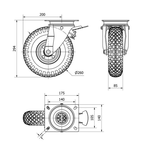 Rueda neumatica giratoria con freno Alex diametro 260 mm. modelo 4-0902
