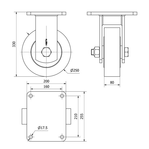 Rueda nylon fija Alex diametro 250 mm. modelo 2-3599