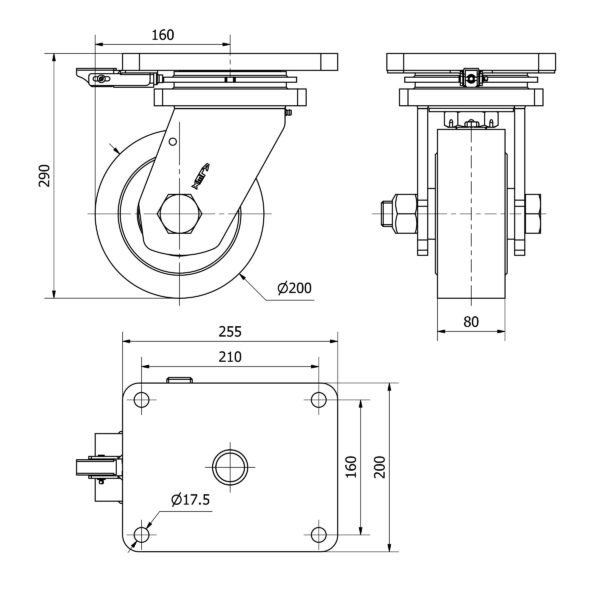 Rueda nylon giratoria con bloqueo direccional Alex diametro 200 mm. modelo 2-4249 EAN 8422202242491