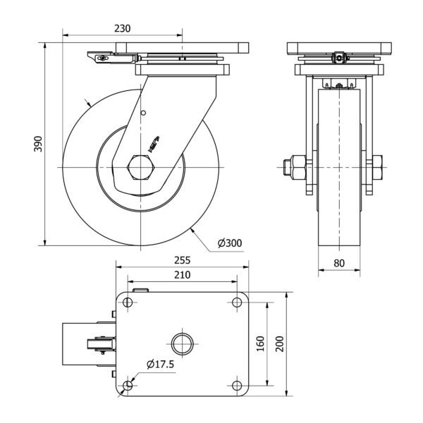 Rueda nylon giratoria con bloqueo direccional Alex diametro 300 mm. modelo 2-4251 EAN 8422202242514