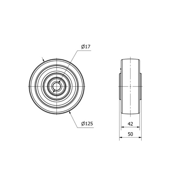 Rueda nylon-poliamida aro suelto Alex diametro 125 mm. modelo 4-0008