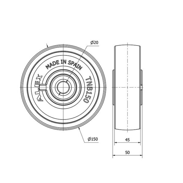 Rueda nylon-poliamida aro suelto Alex diametro 150 mm. modelo 2-0164 EAN 8422202201641