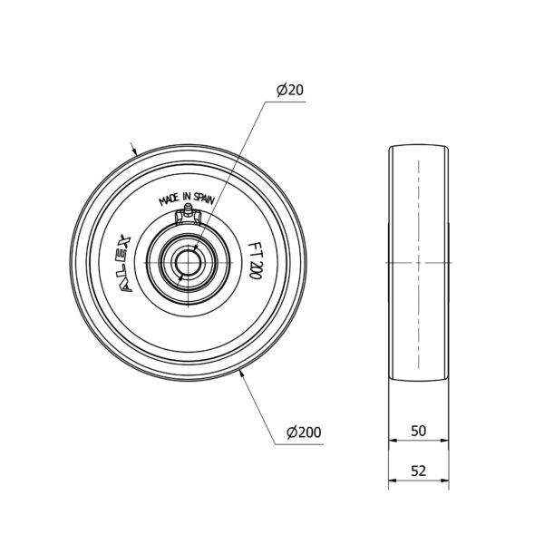 Rueda nylon-poliamida aro suelto Alex diametro 200 mm. modelo 4-0015 EAN 8422202400150