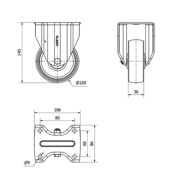 Rueda nylon-poliamida fija Alex diametro 100 mm. 2-0214