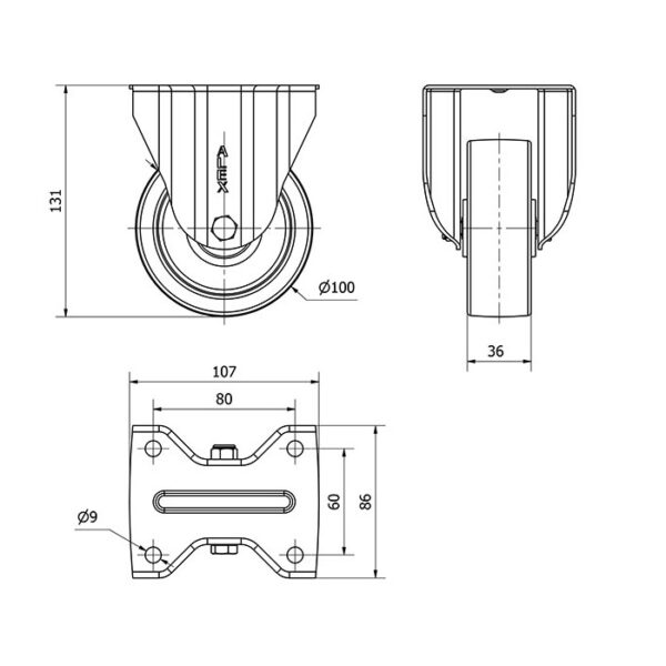 Rueda nylon-poliamida fija Alex diametro 100 mm. modelo 2-2689