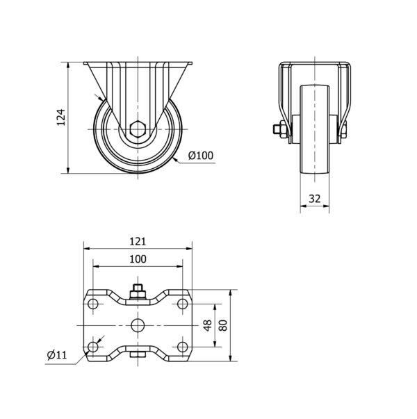 Rueda nylon-poliamida fija Alex diametro 100 mm. modelo 4-0112