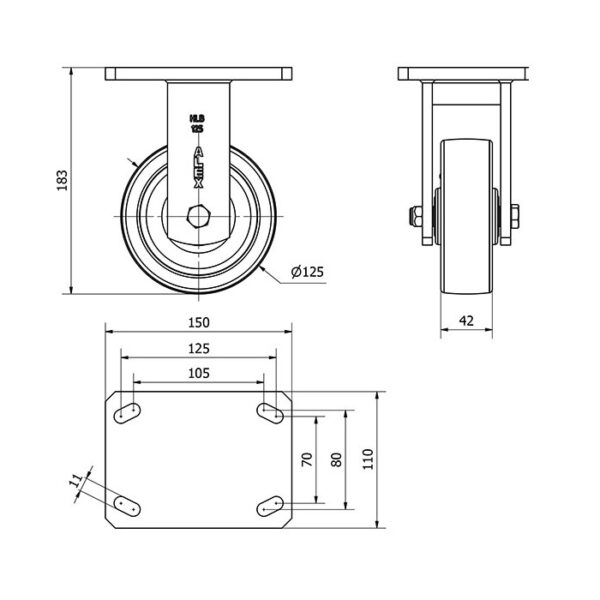 Rueda nylon-poliamida fija Alex diametro 125 mm. modelo 2-0474