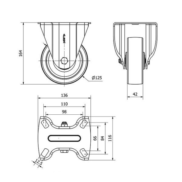 Rueda nylon-poliamida fija Alex diametro 125 mm. modelo 2-1811 EAN 8422202218113