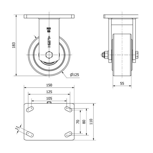 Rueda nylon-poliamida fija Alex diametro 125 mm. modelo 2-4422 EAN 8422202244228